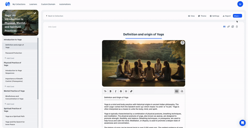 To download your mini-course, click on the “Share” button on top right end of your mini-course editor screen. You will see 4 share options for your mini-course in the share menu.