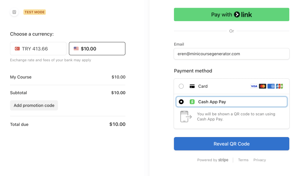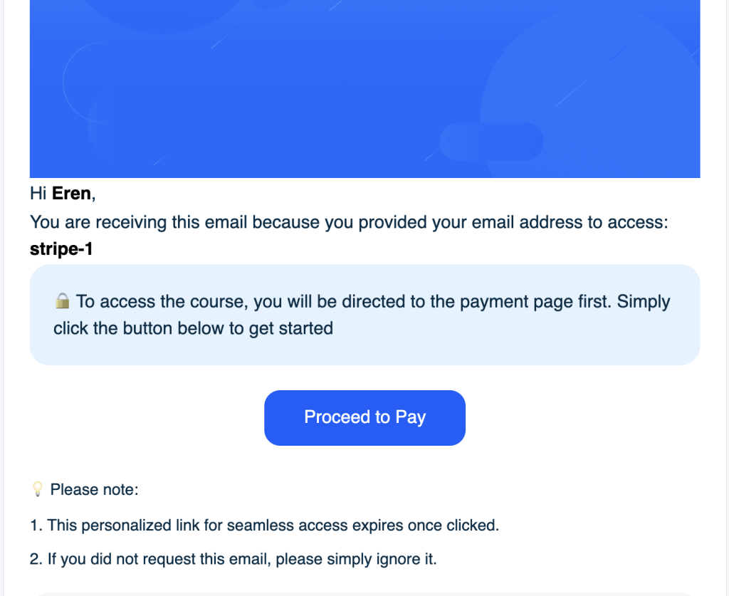 When a learner visits your course, they begin by providing their email address, just like in the double opt-in method. However, instead of receiving a verification code, they receive a personalized payment link via email.