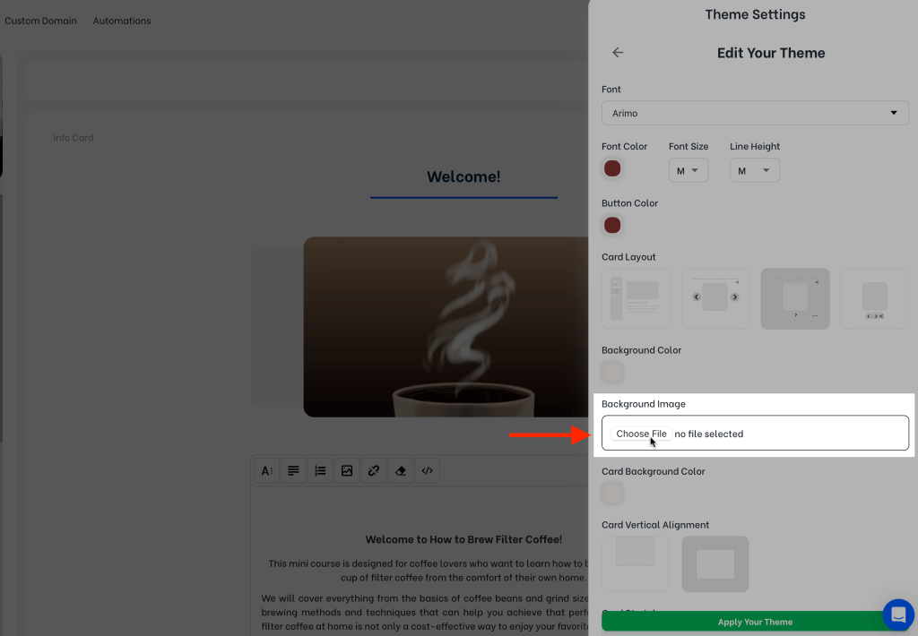 If you prefer to have an image in your mini-course’s background, you can upload one using the background image section.