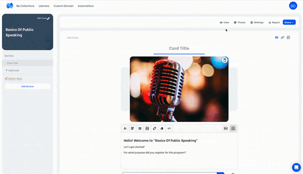 We will demonstrate the process with an example below. Suppose you prepared a mini-course about public speaking and want to distinguish the path for your customers according to their answers to the following question: “What is your purpose for taking this course?”