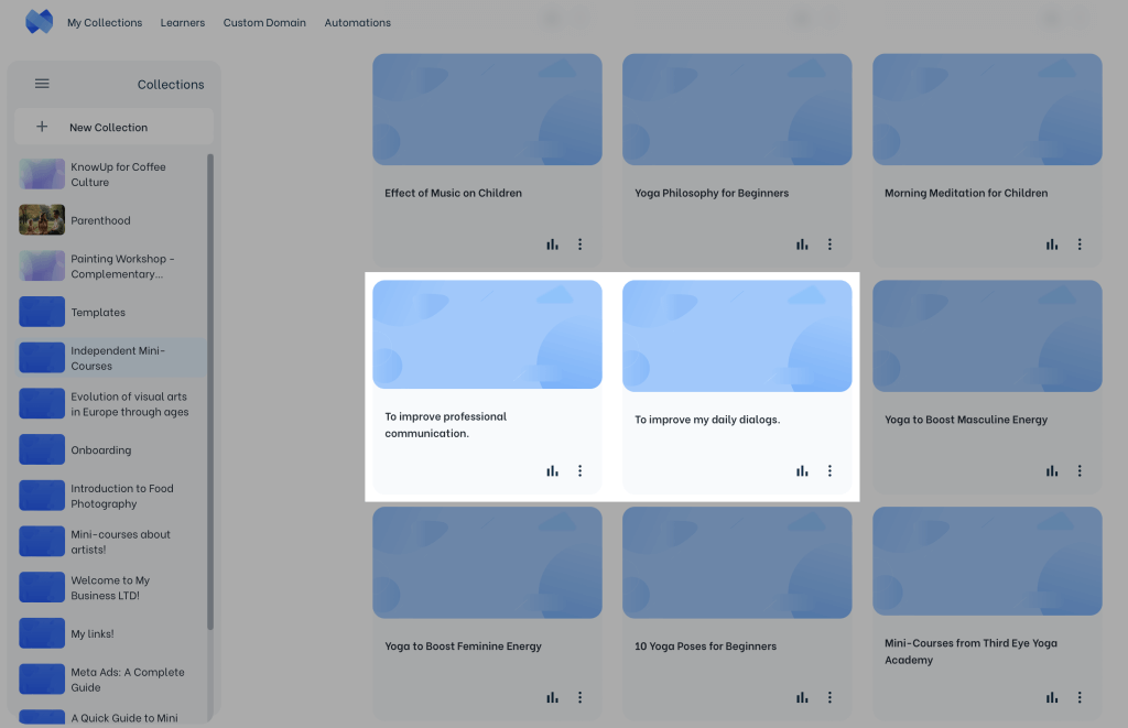 In “Choose your course” menu, all your mini-courses will be available. Pick the one you like as the first option.