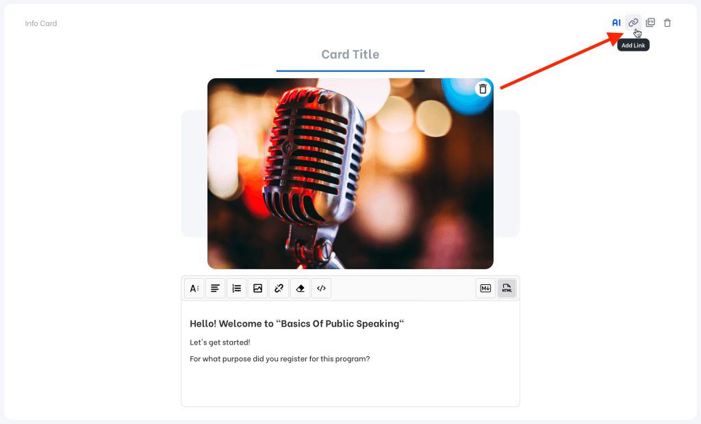 Then, open your main mini-course, and ask your question on the card that will be your turnout card. You will list the options as links to your mini-courses.