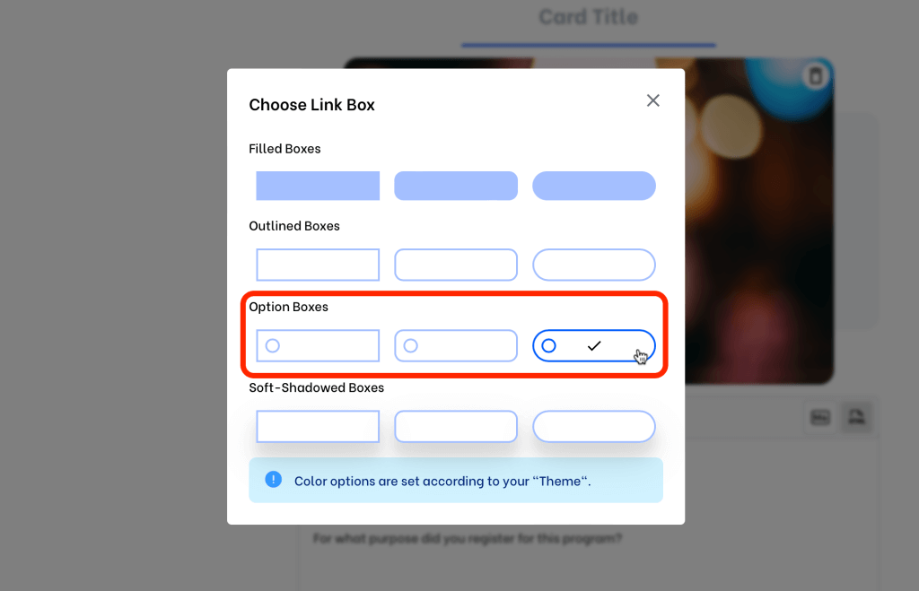 There, you will see 12 different box styles available; you can pick among option boxes. Your choice will be valid for all of the links on that card.