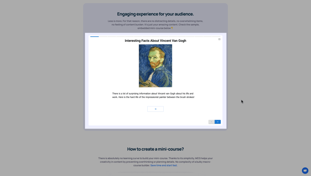 If you have a website built on WordPress, you can embed your mini-courses in your website easily with Mini Course Generator plug-in.