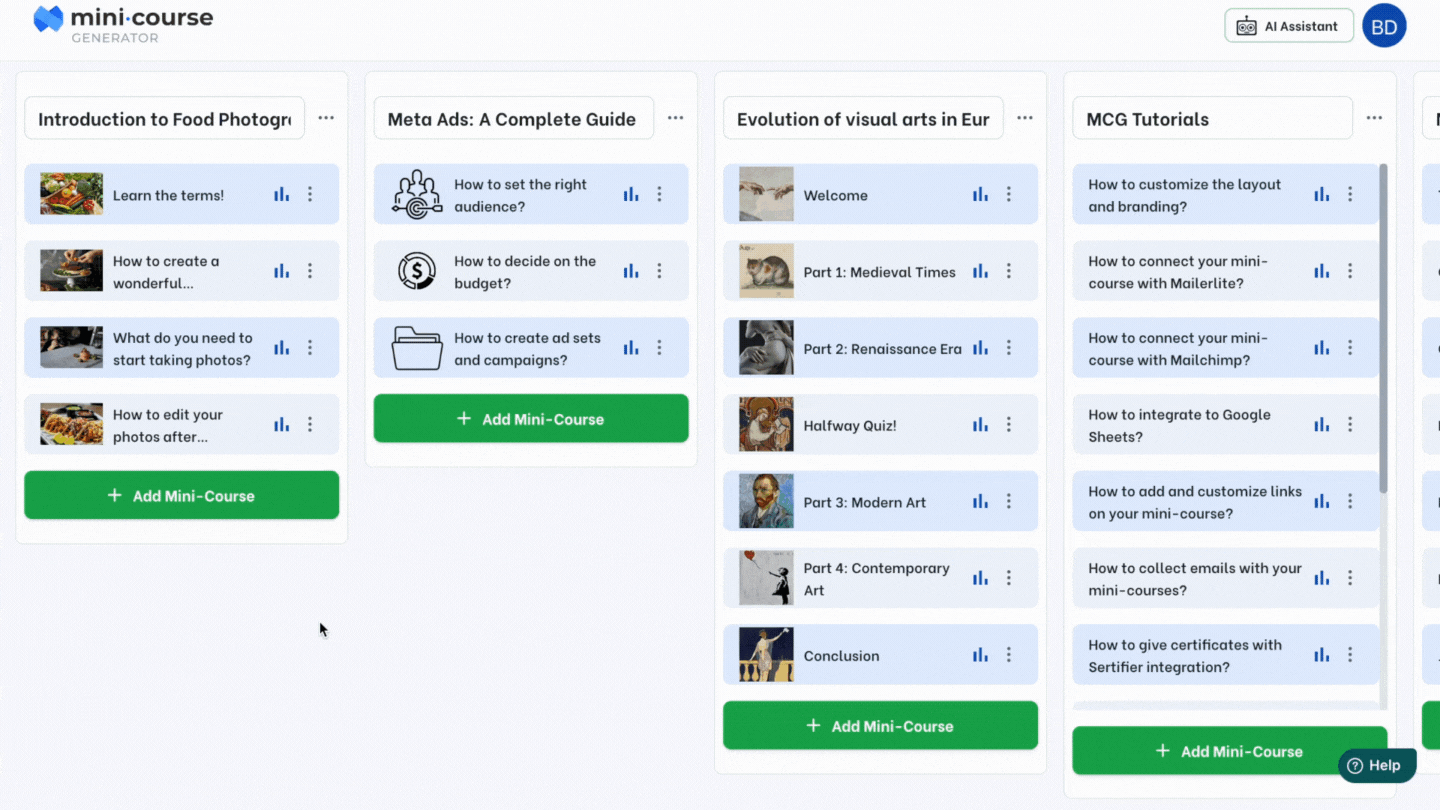 Algunos creadores presentan contenidos en múltiples campos y se dirigen a clientes con necesidades diversas. En este caso, es más fácil reunir minicursos con una base de contenidos similar y compartirlos todos en una colección en lugar de listar los enlaces por separado.