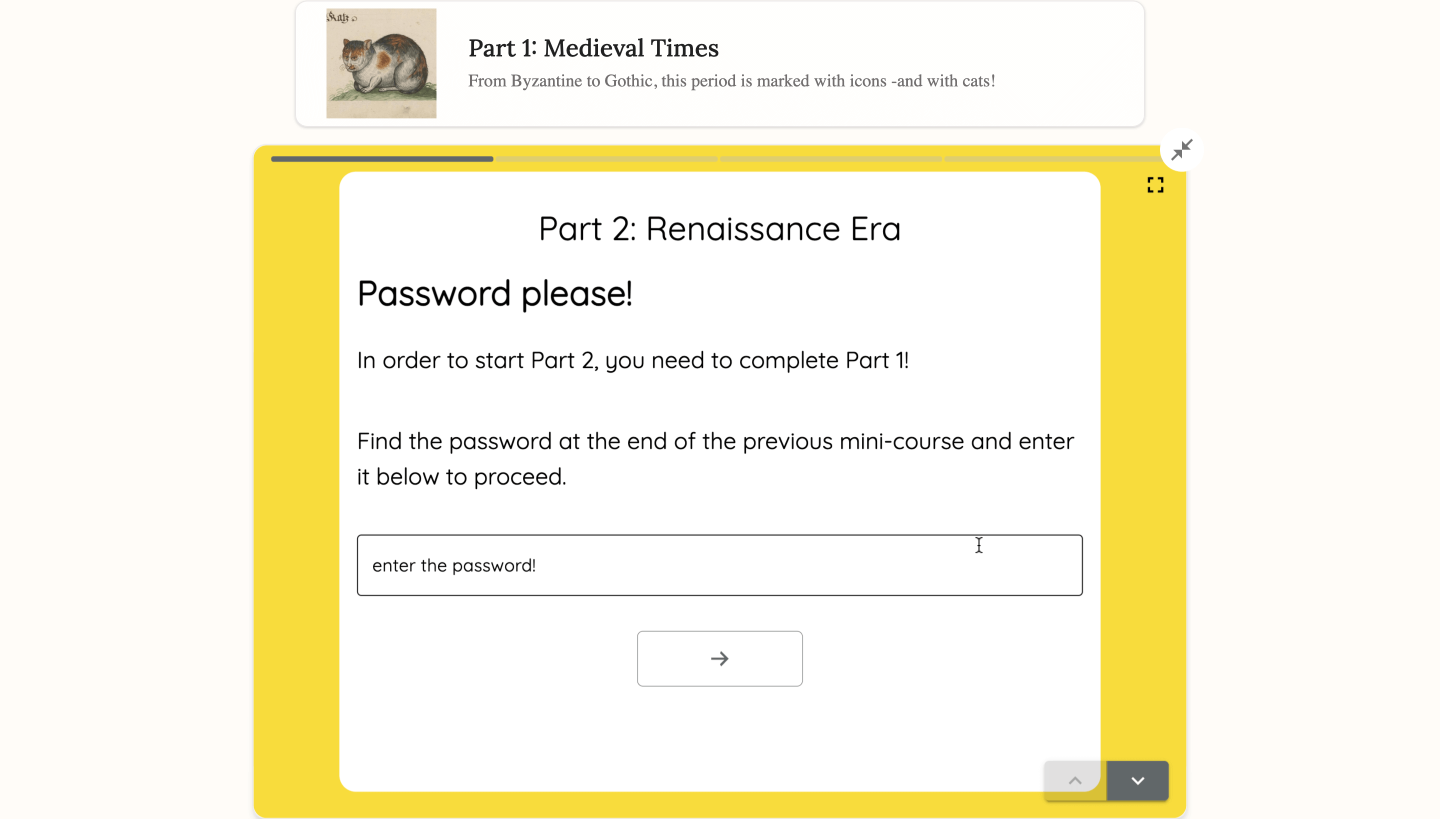 Sugerencia: Si quieres asegurarte de que tu audiencia sigue el orden correcto, ¡utiliza la «protección por contraseña» al principio de cada parte! La contraseña estará oculta en el minicurso anterior.