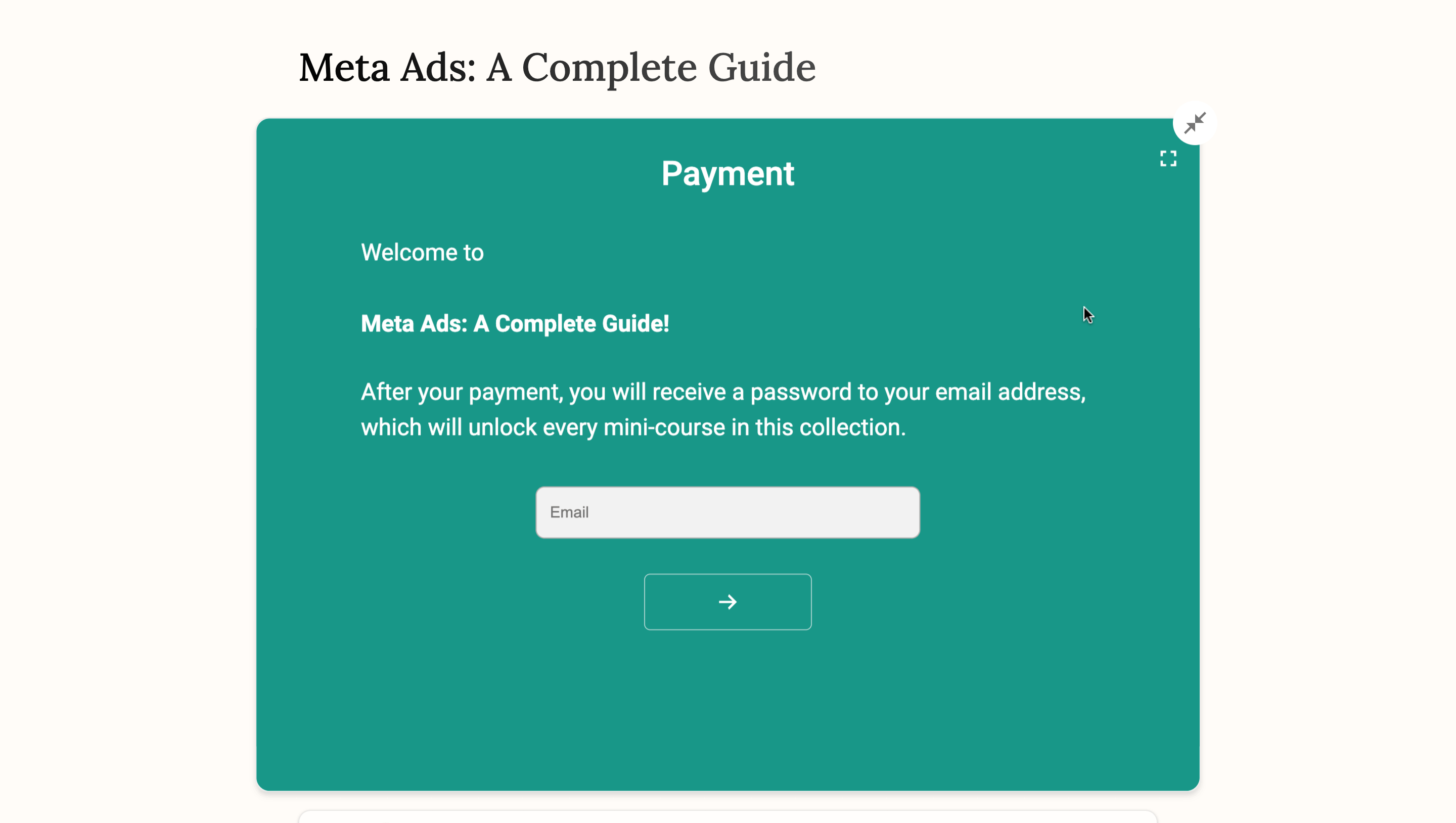 Tras el pago, podrás acceder a los minicursos de las colecciones sólo con una contraseña que te enviaremos por correo electrónico.