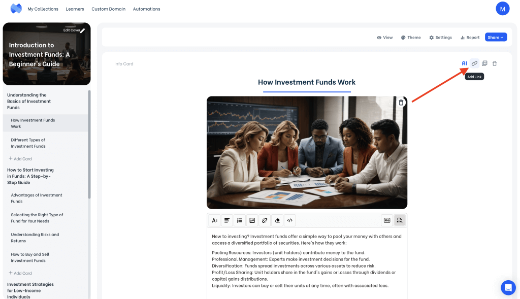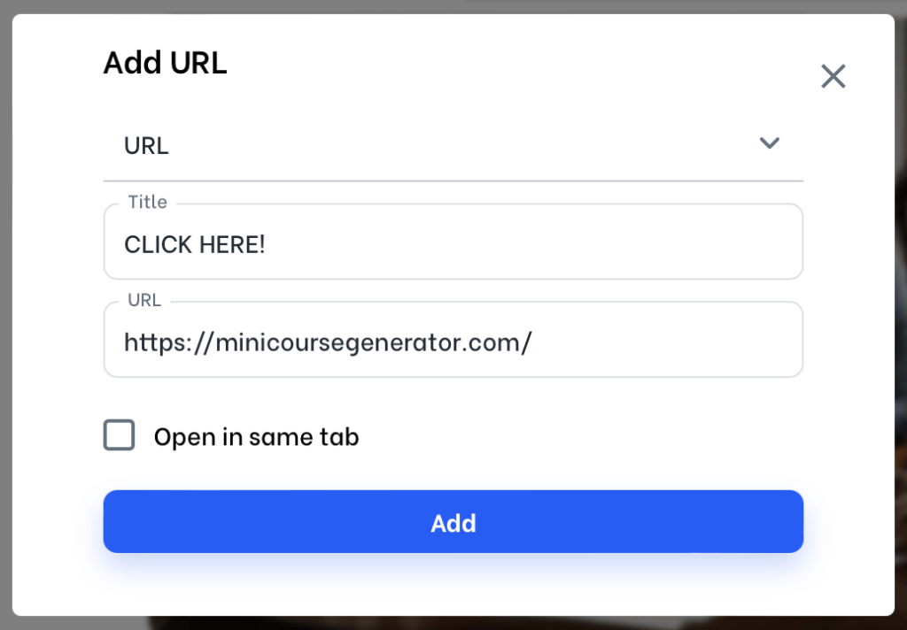 Note: Instead of linking URLs, other link structures are also possible. You can link a mini-course directly from your library.