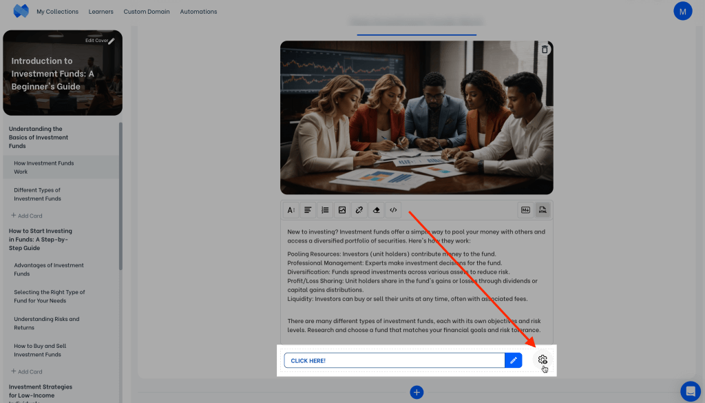 You can add as many links as you would like to a card. After you are done, click the settings icon to customize the appearance of the links according to your marketing needs. You may need to scroll down the card a little bit to see the links you have added.