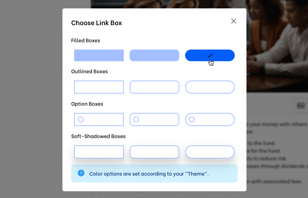 There are 12 different box styles available; you can pick the one you like. However, filled boxes are the best option to create attractive CTA buttons.