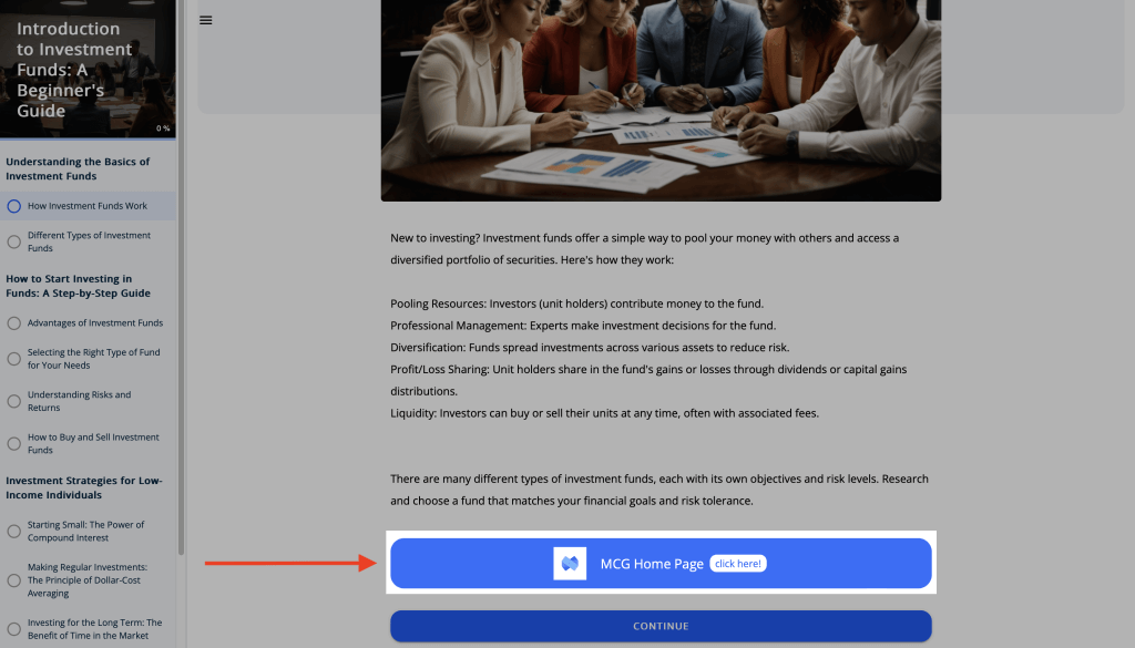 After you arrange your settings, you can preview your mini-course to see what it looks like.