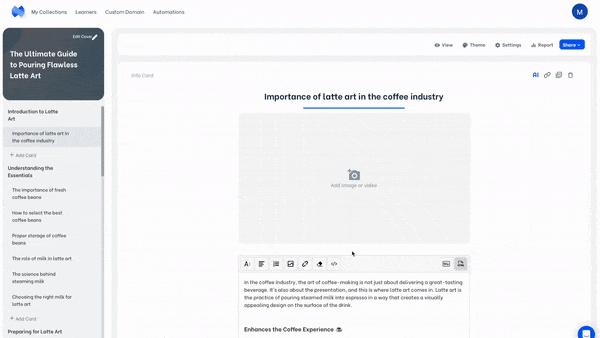 After converting your audio file to MP4, you can upload it directly to the mini-course card header section. This way, your audio file is only reachable for your learners and cannot be shared with others.
