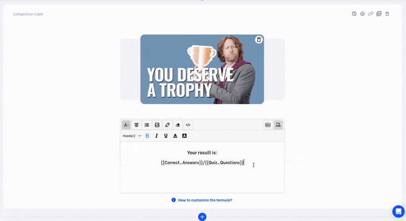 For example, if you need to bring up a message like “You answered 3 out of 5 questions correctly.” as the final card, this is for you!