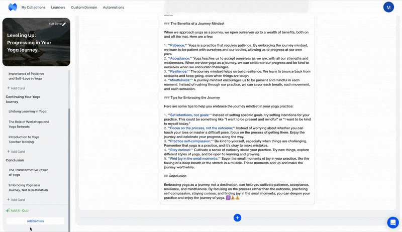 Note: If you’re using the default card layout, there’s a “related mini-courses” section at the end of your mini-course. Related mini-courses show all mini-courses in the same collection. If you’d like the other mini-courses of the same collection to not show at the end, check here.