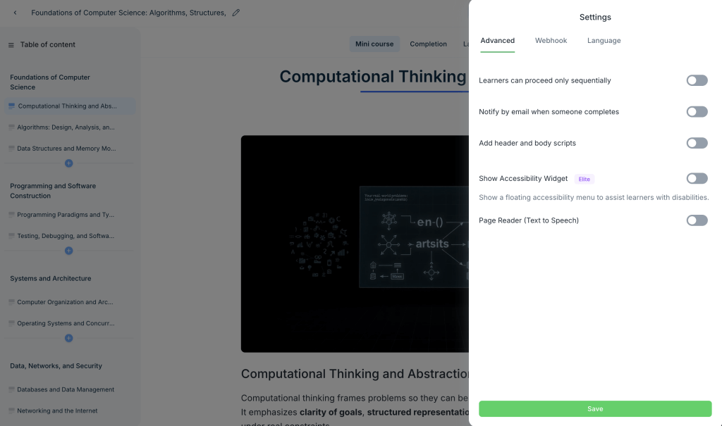 Let’s dive into how these settings can help you fine-tune your mini-course!