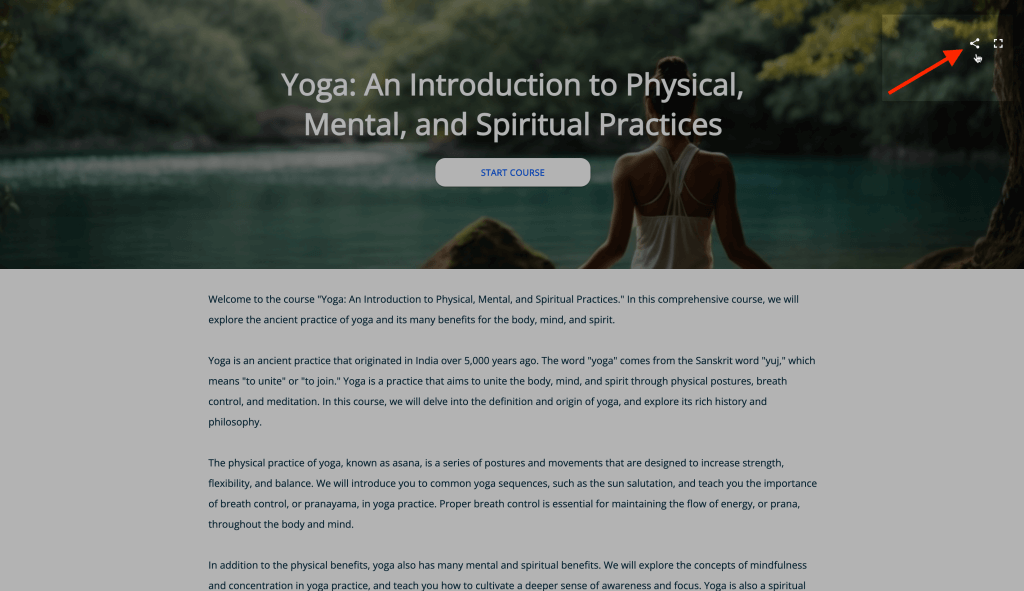 Note: When you click on the “View” button on your mini course editor, it actually opens the mini course with its share link in a new tab on your browser. You can share your mini-course by copying that link, too; however, that link will not show social sharing buttons.