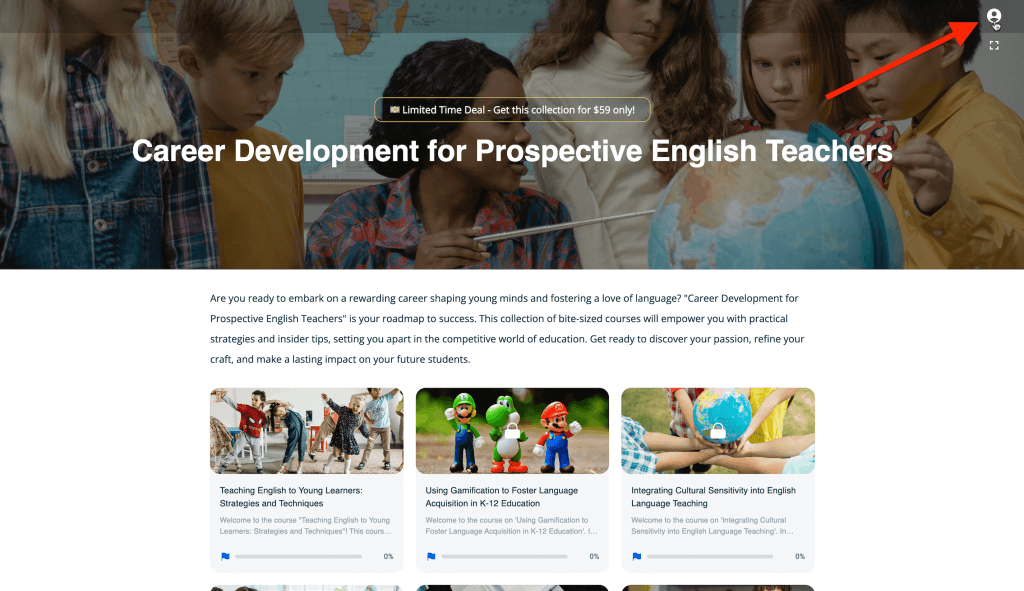 The image below shows what a new learner sees before they access a collection. Additionally, a learner who had accessed your content but logged out also faces this screen.