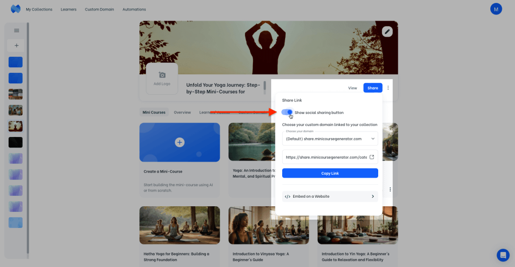 Suppose that you’re a life-coach, and you use a Discord server for your community. Or, you manage an Instagram account. With such use-cases, pinning the share link somewhere learners can access easily again and again would be useful.