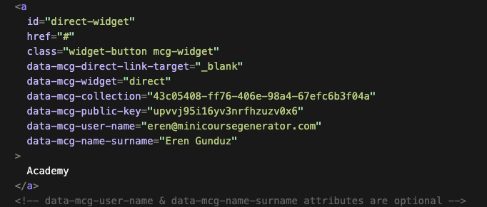 Direct Link widget redirects your learners directly to your course on a webpage.