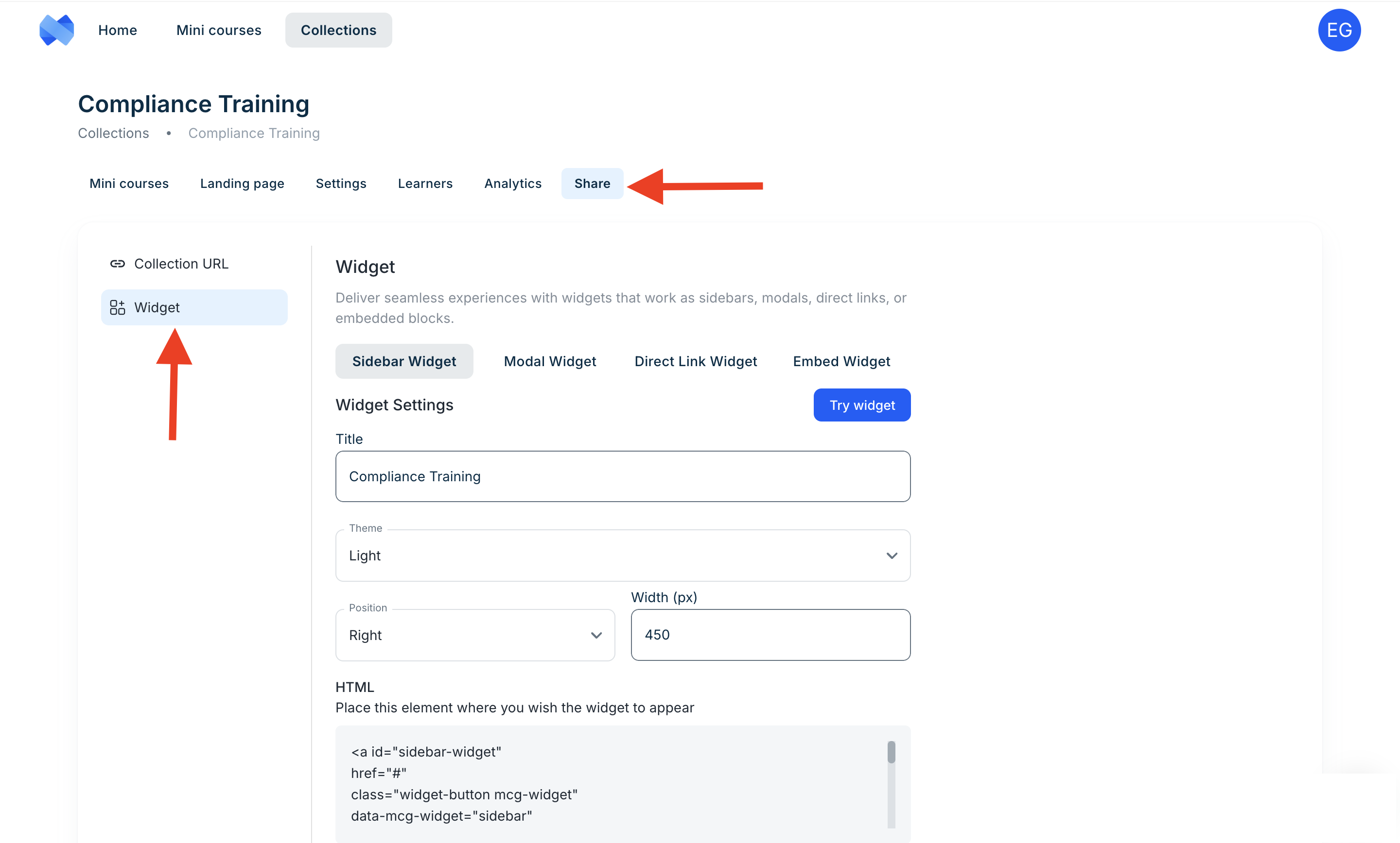 Widgets allow you to display your courses as interactive and branded elements that match with your product experience.