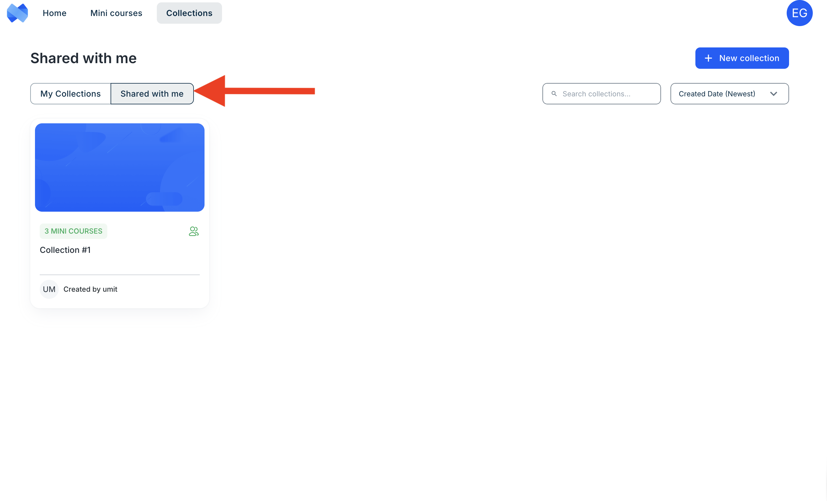 Collaborators will be able to see the collections shared with them in the Shared with me tab.