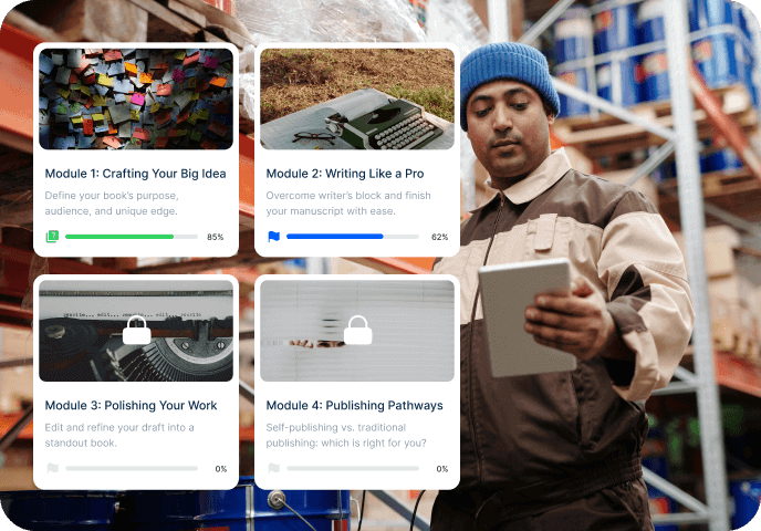 Hacer un curso interactivo con nuestra plataforma AI Course Creator transforma un proceso de meses en unos sencillos pasos. La IA se encarga de la estructura y la redacción, permitiéndote centrarte en tu experiencia y compromiso.