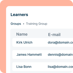 Tienes total flexibilidad sobre quién puede acceder a tus cursos y cómo accede a ellos. Comparte a través de enlaces, incrusta en páginas web o exporta a SCORM o PDF en función de tu caso de uso, todo ello con el apoyo de tu LMS basado en IA.