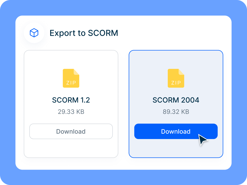 Exporta fácilmente a un archivo SCORM para una amplia compatibilidad con LMS