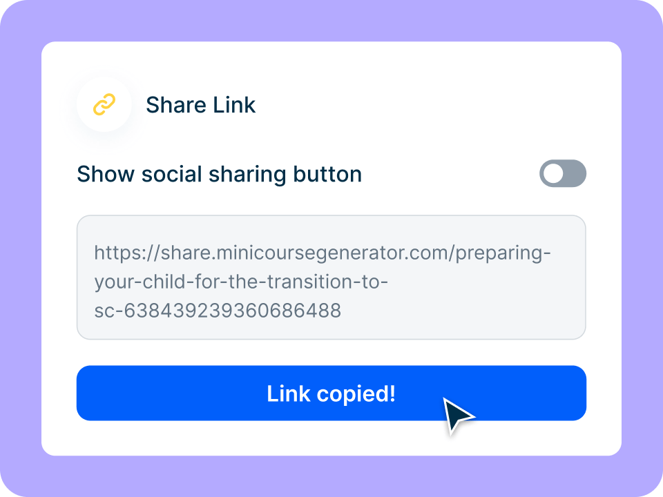 Proporciona acceso inmediato a tus contenidos educativos con un sencillo enlace compartido, incluso sin pasarela. Este método elimina la necesidad de registrarse o iniciar sesión, dejando que los alumnos potenciales se comprometan directamente con la calidad y la esencia de tus cursos. Un enfoque tan accesible acelera la participación de los alumnos.