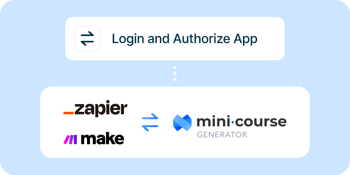 Te conectarás con tu cuenta del Mini Generador de Cursos para crear una conexión y para la autorización con Zapier o Make.
