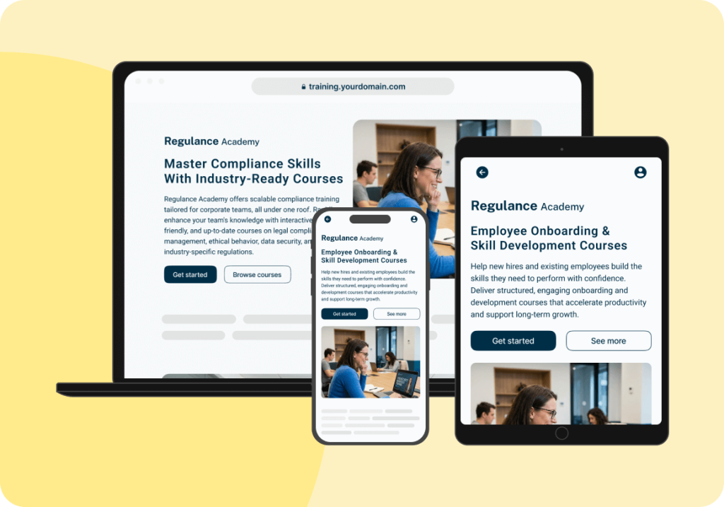 Descubre una plataforma centralizada para la formación en línea de los empleados sobre el cumplimiento de las normas. Desde políticas contra el acoso hasta privacidad de datos, ciberseguridad y seguridad en el lugar de trabajo, las organizaciones pueden crear, asignar y realizar un seguimiento de la formación obligatoria rápidamente. El personal se mantiene informado, cumple y es consciente de la evolución de la normativa, reduciendo los riesgos operativos y legales.